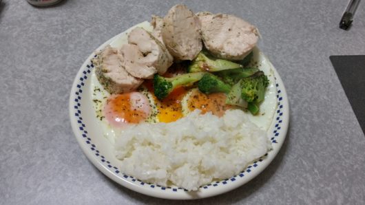 サラダチキンと卵、ご飯にブロッコリーとかなりボリュームがありますし、