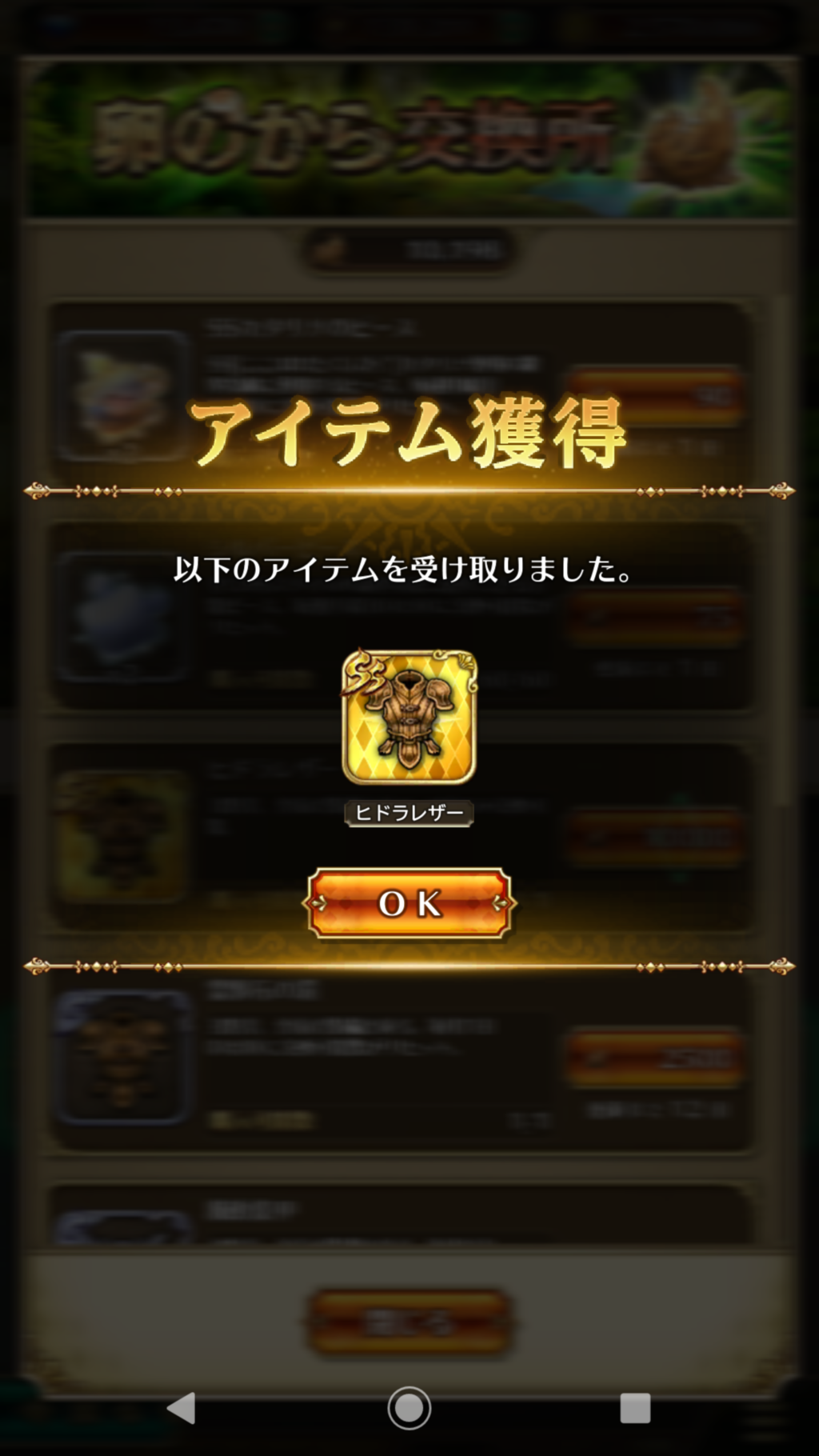 ヒドラレザーをようやく手に入れる事が出来ました。