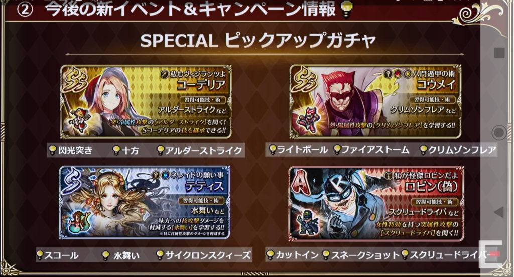 次回のガチャでは登場しないと思いますが、コーデリアのイベントで
