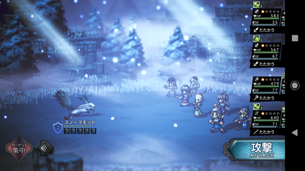 時に後衛が攻撃するように選択すれば後衛が後ろから飛び出して攻撃し
