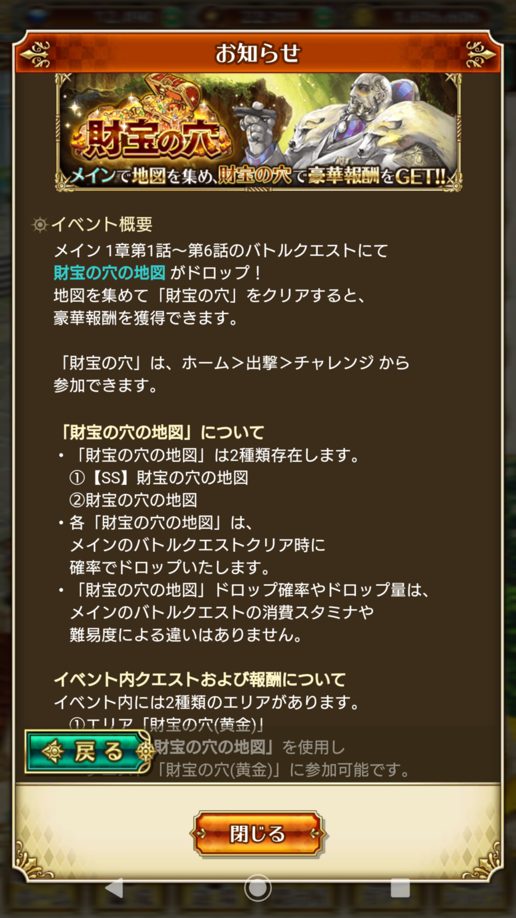 今回のイベントですが、メインクエストで財宝の穴の地図というものが